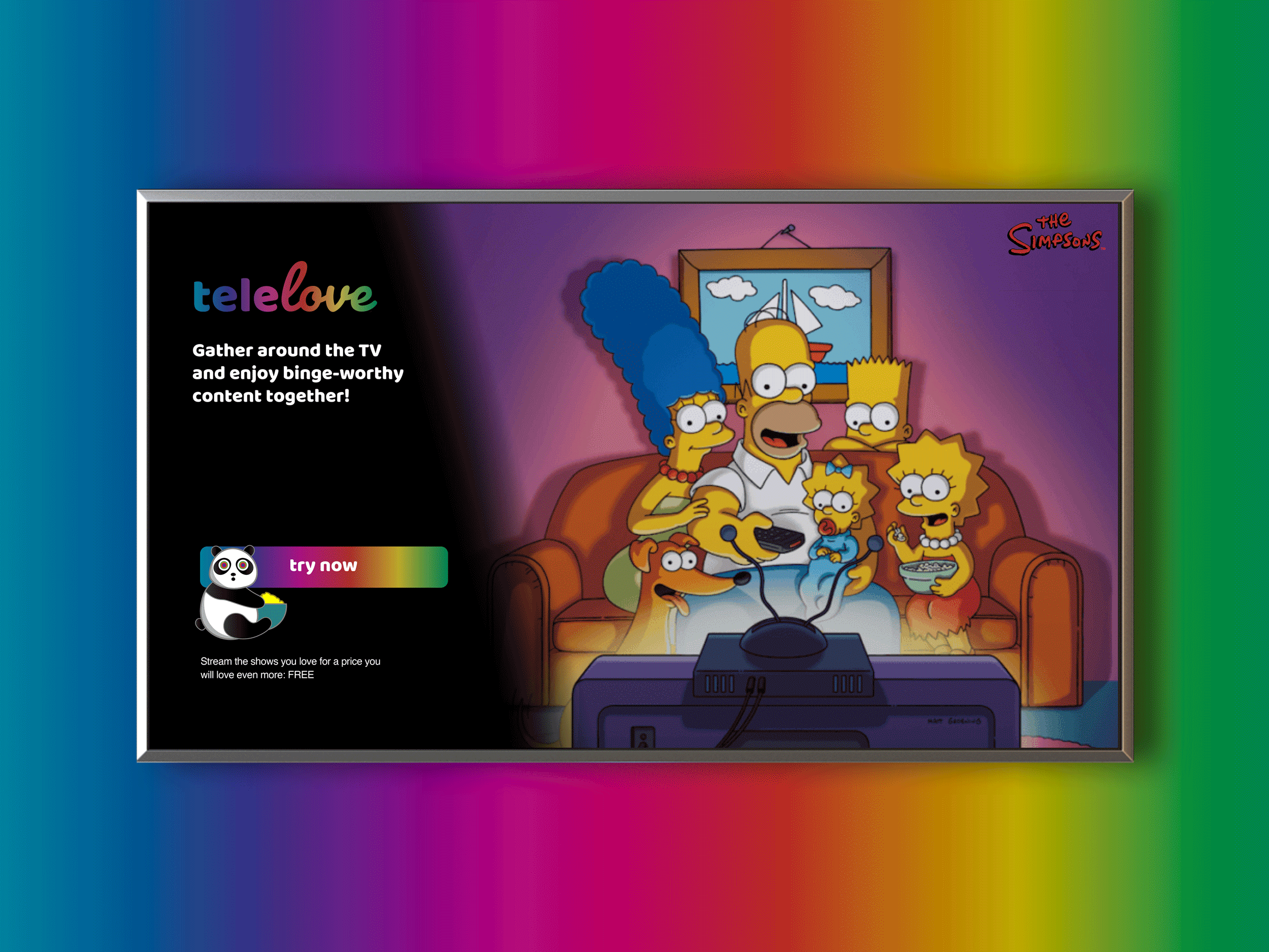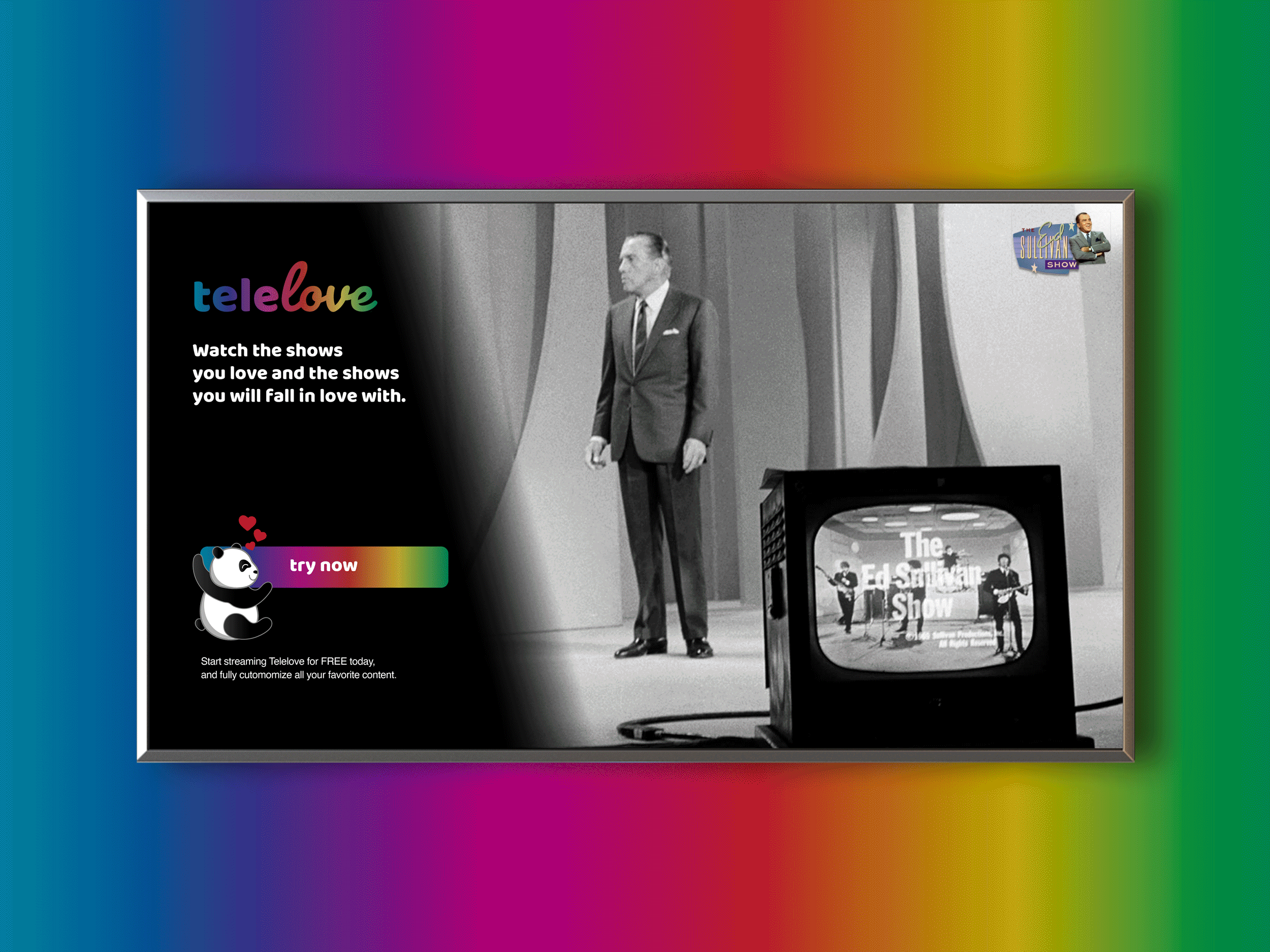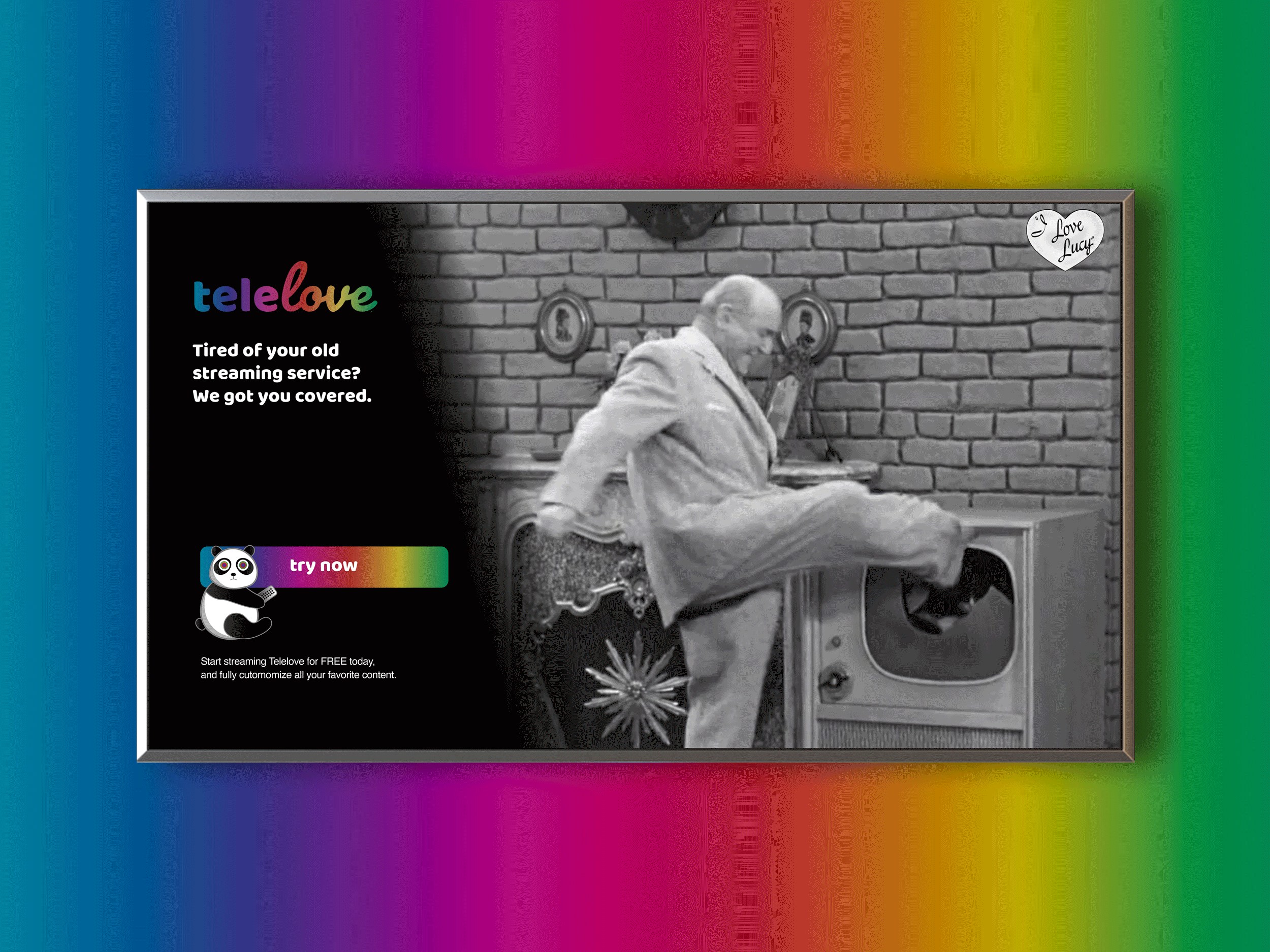 Telelove is a streaming service idea to express my love for television through branding, promotions, landing pages, and home pages. All imagery from the most iconic shows in TV history were researched and chosen to depict screenshots of the main characters with a television, watching television, or looking in a television viewing direction. This pitch deck is for an unrealized design for a class assignment.
